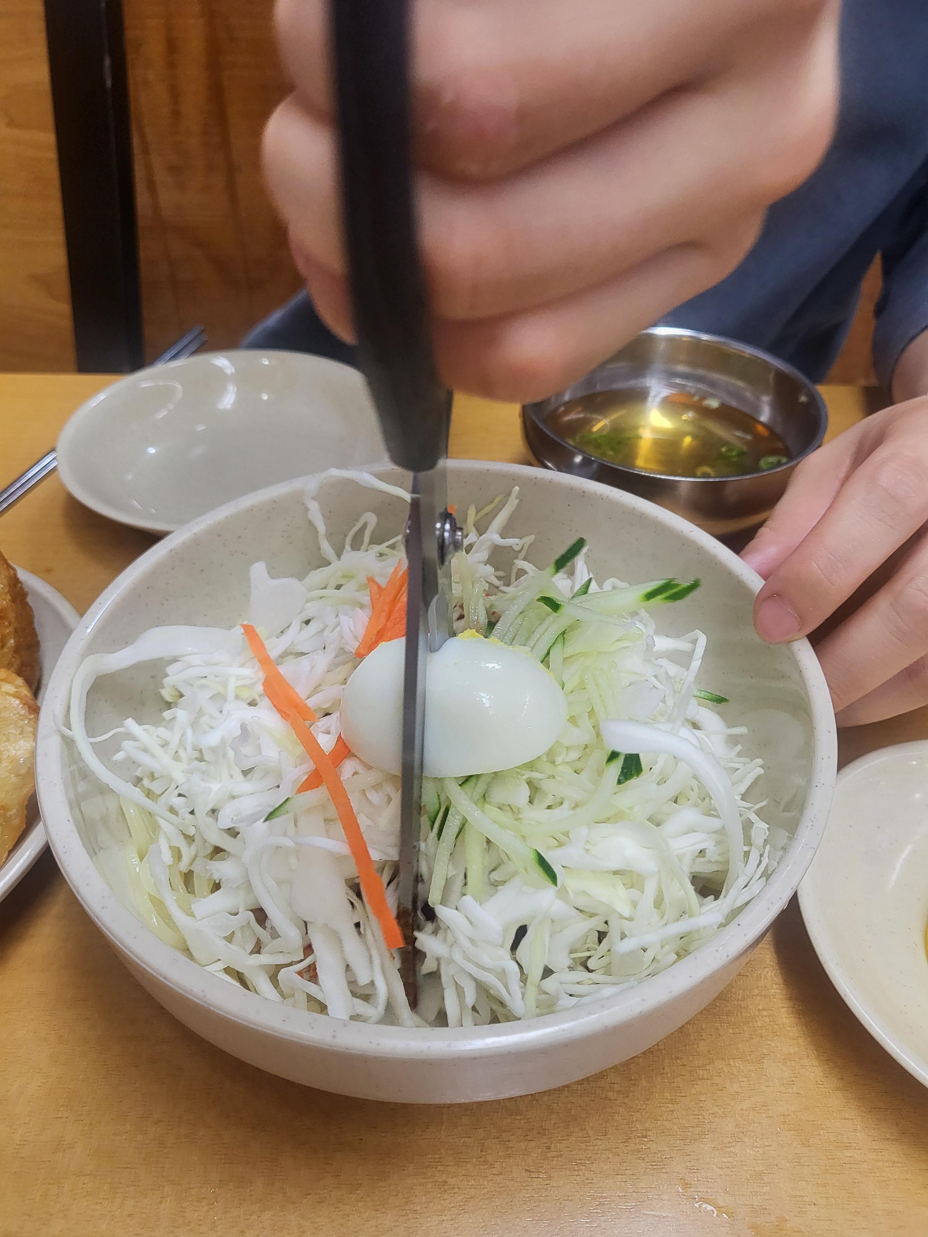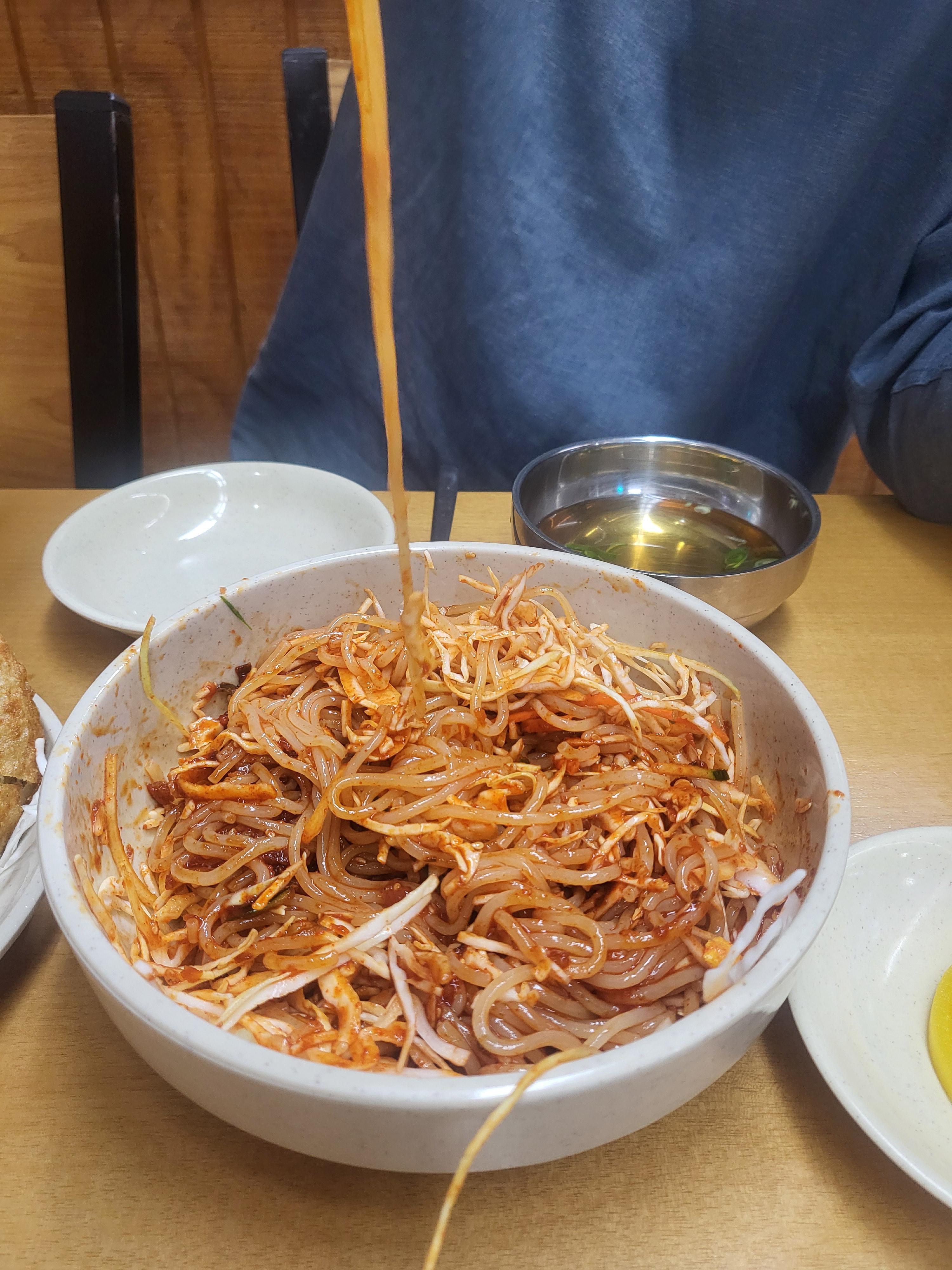 쫄면과 군만두의 조합이 장난이아니다. 비빔만두같은 꿀조합!