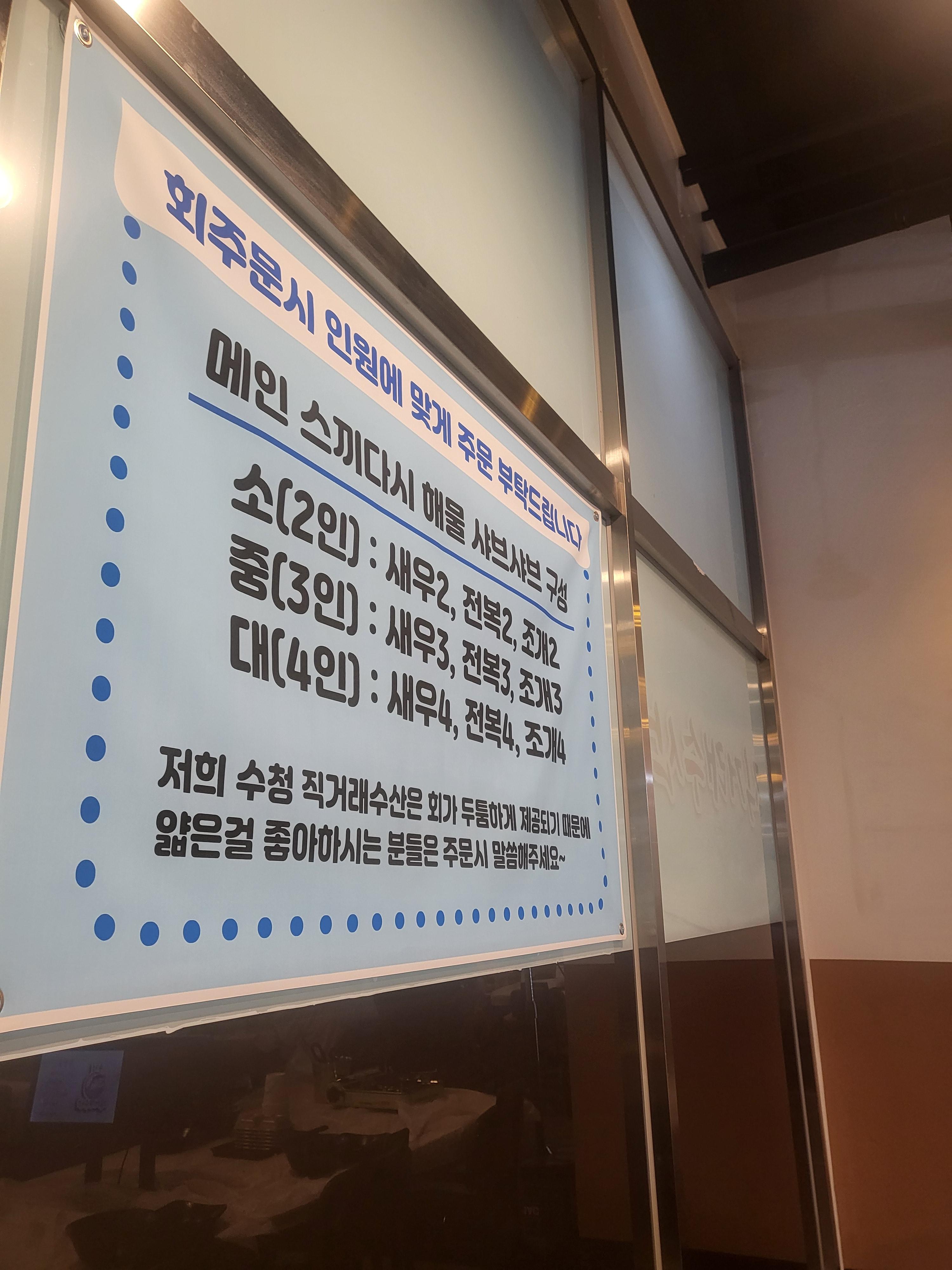 해물과 샤브샤브 회무침 모두 맛있어요. 모듬으로 인원수 맞게 주문하시는걸 추천합니다.