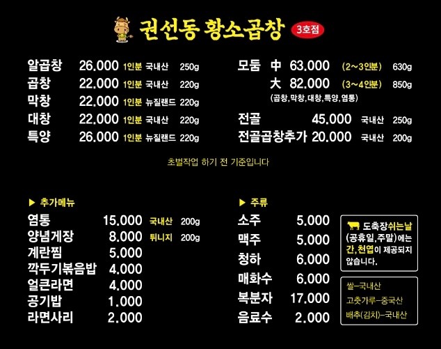 ⭕⭕ 곱창 마니아라면, 권선동황소곱창 3호점은 무조건 가봐야 하는 곳이라고 합니다.